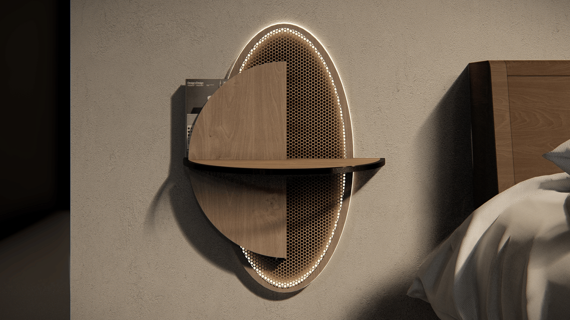 To enhance the cozy atmosphere, an indirect light source graces the back of the side bed. This subtle illumination casts a warm and comforting glow, creating a soothing environment for relaxation. The interplay of light and shadow accentuates the circular motifs, adding depth and character to the overall design.